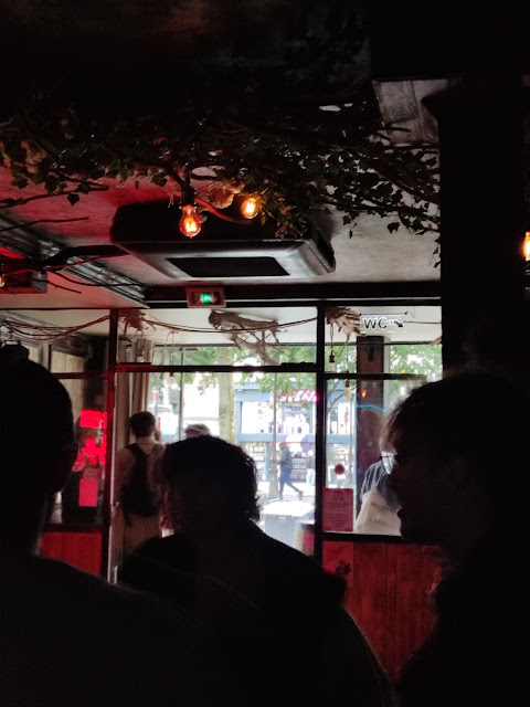 Passé une certaine heure, le bar a la particularité de se transformer en boîte de nuit donc forcément c'est l'heure à laquelle quelques personnes choisissent de partir, dommage de pas pouvoir avoir un coin tranquille en repli, car même l'extérieur n'est pas autorisé en compensation.