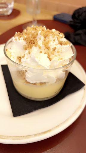 Cozy cafe with careful attention to detail and levels of flavor. Beautifully plated. Salade d’endives au bleu et aux noix was one of the tastiest salads I’ve ever had. The saucisson lyonnaise pistaches was also a knockout. The petit salé aux lentilles had sausage and a beautiful smoky lardon with a lot of depth because the herb (thyme?) my dos de lieu was also a simple masterpiece, the mustard and mushroom sauce enveloping the perfectly cooked fish. We finished with the flan pâtissier. Again fresh, simple, perfectly cooked. The only drawback was getting my seat bumped a few times as I was near the cash register. The owners are consummate hosts, making this New Yorker feel...