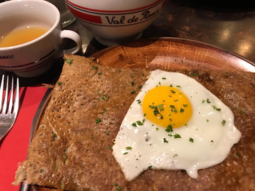The crepes were simply amazing, the owner was very friendly, and the service was outstanding. I had a crepe with chorizo, leeks, eggs, crime, and mushrooms; my daughter had one with smoked salmon, goat cheese and spinach. I forget what my son and wife had, but they tasted great. The crepes were made of buckwheat and were done perfectly—just slightly crisp at the edges. Portions were hearty, but not American-sized—just right. Desert crepes were great as well. I split one with mint ice cream, chocolate, and whipped cream, while my wife and daughter had one with fresh strawberries, cream, vanilla ice cream, and homemade caramel sauce.