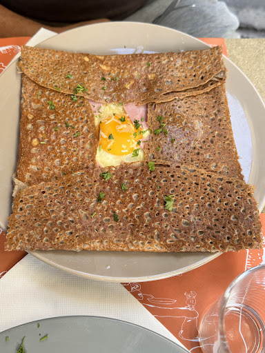 I ordered a galette complète—the classic buckwheat crêpe filled with ham, cheese, and a perfectly runny egg. The galette itself had that ideal crisp edge and slightly nutty flavor that only comes from a well-seasoned bilig (Breton crêpe griddle). The ingredients were fresh and balanced—melty cheese, quality ham, and just the right amount of seasoning. Simple, but executed with care and authenticity.