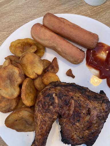 But literally everything else was terrible. The chicken tenders were cold and tasted like nothing, the sausages had a mysterious cheese filling inside (this was the only item we really couldnt eat) The potatoes were cold and chewy like rubber. I wouldn’t feed this garbage to my dog… was...