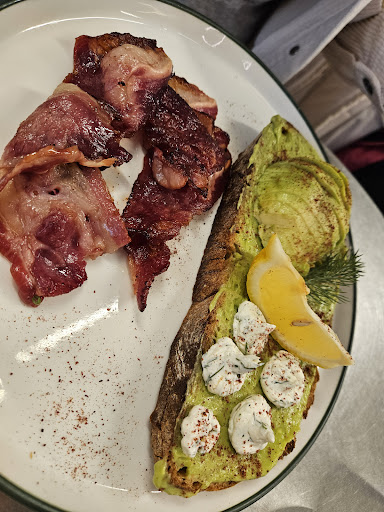 Read moreThe food was ok but the space was very small alias u have no space and have to squeeze into the seats. There was a big line and an even bigger one formed while we were inside. We arrived at 11:15 und got seated around 11:40 which was ok for me. I had the avocado toast which was just ok. What really disappointed me was that u had to order the eggs separate and with the price of 13€ for the avocado toast alone is overpriced. I also had a hot chocolate which I really enjoyed. My friend had the pancakes which we shared. The pancakes were freshly made but the mascarpone cream was really unnecessary as it didn’t deliver any flavor. The berrys were a joke because I could count up to 7 berry’s for the whole pancakes. The interior of the cafe was on one side very clinical and basic and on the other side the ceiling was eye catching. They played good music that could have been a bit quieter for my taste. Inside the seating is...