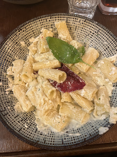 I don't know why, but Italian restaurants in France are simply not. We hoped that this time it would be different, a 4.9 score on Google. The food was average minus. The parmigiana di melanzane - an Italian dish of kings was bland and too salty. The pasta (dish of the day with pesto and pistachios) arrived almost completely cold. Anemic, tasteless. Pesto, the Italian sauce. The green gold. Here it was really bad, it was barely noticeable in the dish. Depending on the taste, it may even be that it was not prepared fresh on the restaurant but bought somewhere.All the dishes come with a thin pastry stick on top of them, a take off for the Italian grissini, nice idea, poor execution. In short, those who really love Italian cuisine with fine ingredients - this is...