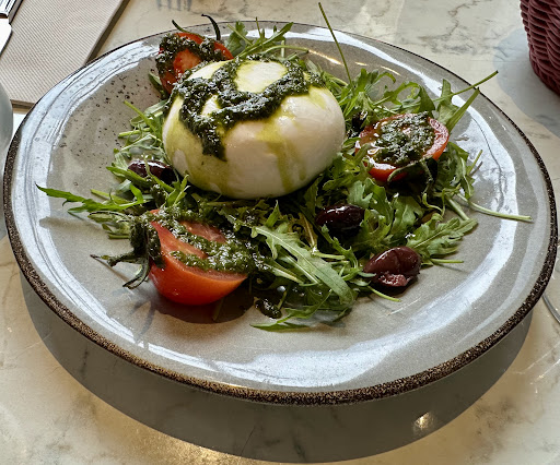 The burrata was one of the best we have had and we were just in Italy. She had the gamberi and I had the salmone. Both were very well prepared and seasoned well.