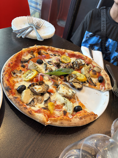 Les pizzas sont cuites dans un four à bois, offrant une texture croustillante et une saveur authentique à chaque bouchée. La pâte est légère et aérée, avec une garniture généreuse, allant des classiques comme la margherita, à des créations plus inventives... Les ingrédients utilisés sont de qualité, avec des fromages italiens, des légumes frais, et des charcuteries savoureuses, offrant une expérience culinaire riche en saveurs.
