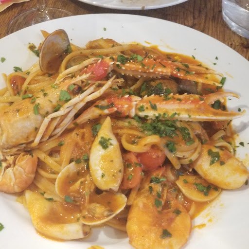 My Mediterranean Sea Bass was perfect and my wife's Linguine allo Scoglio delighted the senses.