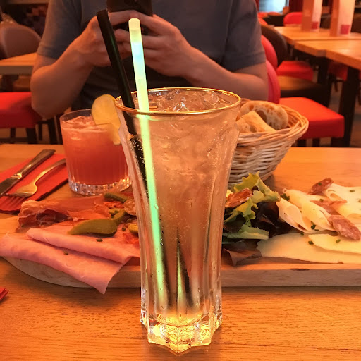 Learn moreThe food was alright, but the team effort here is impressive. For a cafe in Paris, this place is actually very spacious, with plenty of outdoor seating, a lengthy bar, and several couches, and a foosball table if that strikes your fancy. We were here one night when it was pouring outside. The outdoor seating area was covered with glass doors and an awning, but the rain coming down was forcing the awning to cave in. That whole area was starting to flood, so the guests moved inside. Meanwhile, the staff, including bartenders and waitresses, rushed out there to get brooms and anything with enough reach to push the water off of the awning and onto the street. Some of the water still forced its way in, drenching the staff members. As the rain came down relentlessly, their efforts seemed futile, but I respect their dedication.