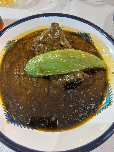 Once entering in the restaurant , you are being welcomed warmly, afterwards you get the menu on the table , many options, I chose the "black soup" and so after giving the order they brought me a medium welcomed plate with harissa , slata, and shredded carrots with a basket of cut baguettes. It was very nice till the food came and I was suprise to see the big piece of meat and a lot of that soup . Big portions are always appreciated, I almost though of getting afterwards a couscous but that was already enough for me. I loved it , the taste the flavor its all just reminds hmeti's cuisine . The good smells all over the place. Recoomend it to everybody who loves tunisia, and who love trying new cultural cuisine . Keep in mind they don't speak...