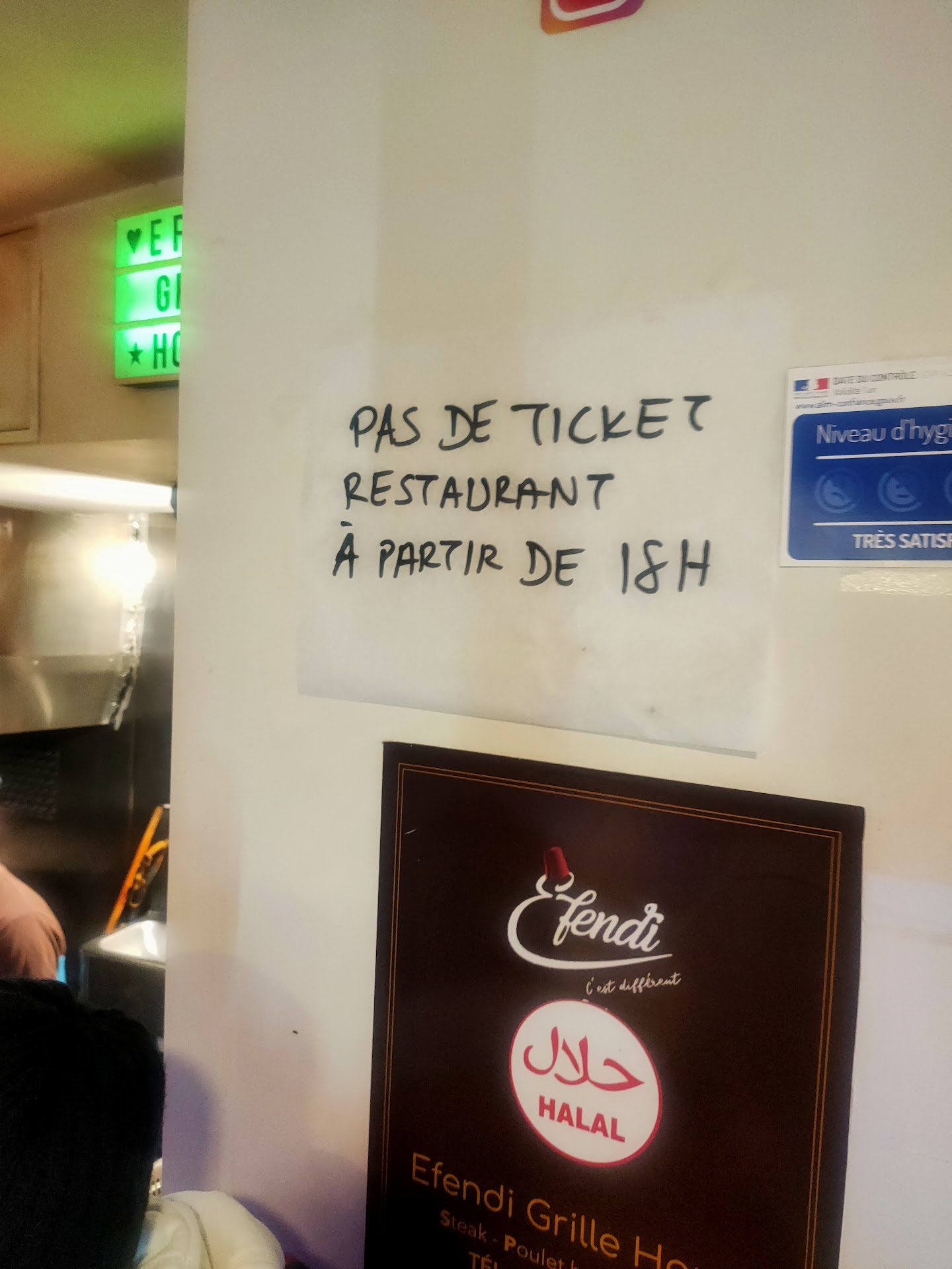 Il n'existe pas de petite plancha, hormis pour les enfants. Les sandwichs ne sont autorisés que pour la vente à emporter. Si vous avez envie de partager une plancha (au vu de la quantité), cela est "autorisé" à condition que chaque personne avec qui vous partagez votre plat paye 8€ supplémentaire au prix initial de la plancha. Évidemment, aucun ajout de nourriture ne sera fait sur la plancha malgré le supplément facturé. C'est un peu comme une taxe d'habitation, mais là, vous payez une taxe d'alimentation. Les tickets restaurant ne sont pas acceptés à partir de 18H.