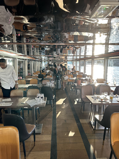 We were escorted to our seat which was at the front of the boat but definitely not worth the additional $$$. The dining area itself is super congested almost as it you are sitting at the same table as the other patrons. As I gazed outside I saw another cruise called Bateaux Mouches which looked better with better spacing and silently wished I was on that one.