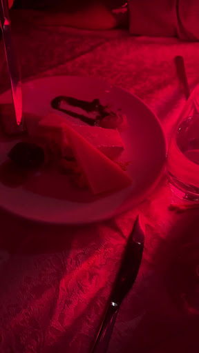 The dessert was a heart shaped chocolate mousse and very so-so
