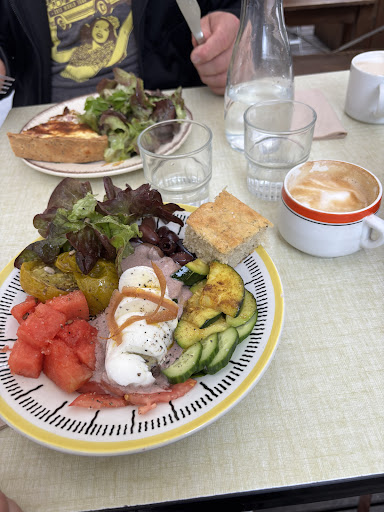 Cependant l'accueil est vraiment à revoir, d'où mes 3 étoiles 😢 La boutique a 2 services de brunch à 11h et à 13h, et ce jour-là nous sommes arrivés à 11h20. Nous étions 3, c'était super bon et nous avions super faim et froid donc nous avons mangé rapidement. À 12h nous avons déjà fini 4 sur 6 parties du brunch, il ne nous restait que le plat salé et le dessert - ainsi nous ne pensions pas trainer, pas du tout. Mais une vendeuse est venue nous insister au moins 3 fois de prendre immédiatement le plat salé car il était déjà tard. Regardant les tables à côté, nous avons remarqué que les autres convives ne semblaient pas d'être autant bousculés, bien que certains soient encore avec leur yaourt/jus d'orange/café/chocolat chaud donc au début du brunch. Nous ne comprenions pas un tel traitement pour nous. Finalement étant trop gênés, nous avons pris le plat salé sur place et le dessert à emporter.