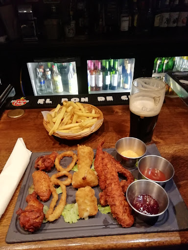 I had two pints of Guinness (€8 each), and a starter platter for two (I was on my own). It was beautiful and plentiful. I paid €16, well worth it. It came with 3 chicken wings, 4 onion rings, 3 chunks of hot camembert cheese (my favourite), 4 long chicken goujons and very tasty chips. I ate it all.