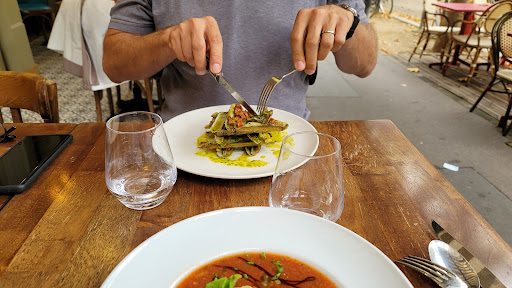 a local eatery, with nice staff but the food is a miss. Had a gaspacchio (cold soup) and Tuna, and my friend had seafood as a starter and tartar steak. While the food was tasty, it missed a few marks on my book. 1. the gaspaccho was served with a basil and lemon ice-cream in the middle. I know it is hot outside, but please don't mix sweet and sour (this is not an Asian restaurant) - first disappointment. Also, my tuna was consistently too raw despite my demands to have it very well done and sent back to the kitchen once (I did not feel like sending it back a second time, to avoid disrupting the flow of the lunch etc). The tartar steak came with ordinary potatoes. Should have come with fries, to be more traditional. last but not least: the "formule" (cheap combination of entrees/main course etc) only came with one choice of entree (the gaspacho) and 2 choices of main courses, whereas the menu had tremendeously more choices. I felt like second class citizen here. For all these reasons, only 3 stars. Give the place a try, but mitigate your...