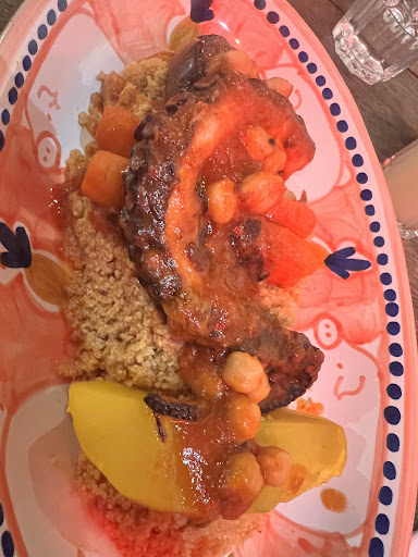 Surprenant Je ne m’y attendais pas du tout ! On a été pour le brunch, eh oui il y a un brunch italo tunisien. Ne vous attendez pas à un lieu Instagramable parfait, mais plutôt à un endroit où vous avez l’impression d’être à la maison. La cheffe italienne est détendue, souriante et nous prépare ses plats en chantonnant tranquillement de temps en temps et en échangeant en italien avec l’accent et la voix qui porte avec le gérant, c’est génial, ils sont tous les deux très sympas. Première assiette : 1 bruschetta italienne 1 tunisienne, un bol de velouté, un fricassé tunisien : tout est vraiment bon, J’ai hésité à prendre un fricassé en plus. 2e assiette : une poêle entière de shakshouka (chacun sa façon de l’écrire) à partager très bonne, du goût on sent que les produits utilisés sont frais et bien choisis, c’est bien assaisonné,. Je suis bien je m’attend à passer au dessert… Et bah non 3e assiette l’italienne cette fois : une belle assiette de pâtes tomates et champignons à partager. Je n’avais vraiment plus faim mais j’ai quand même mangé la moitié des pâtes parce qu’elles étaient vraiment bonnes et se mangeaient sans faim ! Heureusement que je n’ai pas commandé de fricassé en plus. Et le dessert pour finir sur une touche sucrée : un godet de crème à la fleur d’oranger et un cake à l’orange. Je suis moins fan car je suis pas trop orange, j’aime juste le jus, mais il était bon quand même. Le tout pour 29€ par personne. Très surprenant le mélange des saveurs et des deux cuisines, on mange vraiment bien, c’est très copieux et surtout très bon ! Vraiment surprise. J’aimerais revenir pour goûter les plats, le risotto au poulpe ou les pizzas avaient l’air pas...