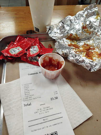 Read moreI recently visited Five Guys at Champs-Elysees with my friends on a weekend. As we were eager to try their famous burgers, we arrived early. Despite the crowd, we were able to find a seat and place our order promptly. The service was efficient and friendly, and our burgers arrived shortly after we ordered.