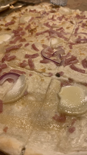 The pizza was equally as bad, we were served a flat pizza, about as thin as a piece of cardboard, with the taste following along with that. There was a lack of sauce, and the cheese on it was both flavourless and disgusting. I had not expected the restaurant to get better, and follow through with the desert, however I was so mistakenly wrong, something I would come to be throughout my experience at Flams.