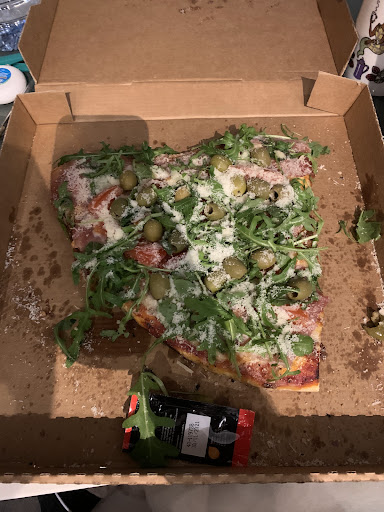 La qualité des ingrédients de la pizza que j'ai choisie est vraiment discutable : le fromage n'a aucun goût, le jambon vraiment coupé très fin également peu savoureux, l'ensemble est très gras. Finalement je prends plus de plaisir à déguster une pizza du supermarché.