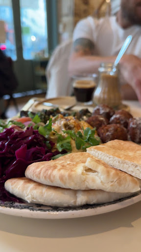 We got the falafel and hummus plate and it was so authentic. So perfectly Israeli with shuug, and tahini, and red cabbage, and green olive oil. So so well spiced and full of flavor!