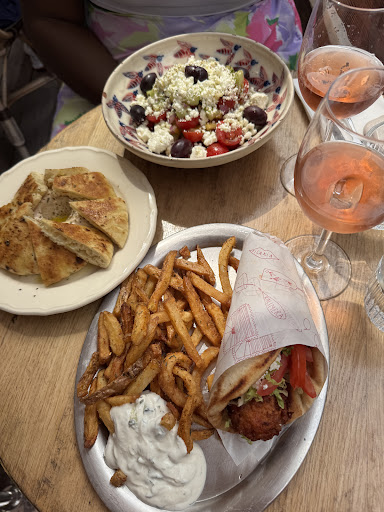 Read moreA good place for Greek food. The rosé pictured was really delicious. Wait staff was incredibly friendly. The prices are a bit high for the location however. Our bill was 83€ for 2 starters, one main and a bottle of wine. The Greek salad was really lacking salt and flavor and the olives are put in there whole which to me is not really kind to the customer. You have to deal with the pit and then what do you do with it after? It’s a step in the kitchen that makes an 18€ dish more refined. The veggie pita was incredible, but at 20€ a bit exaggerated.. for chateau d’eau the price point doesn’t really equate. Not sure if I’ll return but was very happy to...