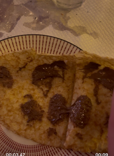 The rest of the food was undercooked, with that unmistakable frozen-then-microwaved taste. And for dessert? A Nutella crêpe – except inside was a tiny dot of Nutella, and the crêpe was dry, tasted like a kitchen rag.