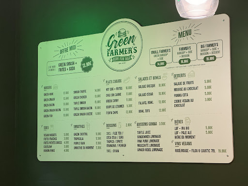 Read moreAbsolute best vegan burgers. I am not vegan but if all vegan food tastes this good as Green Farmer's with quality with perfect texture and fresh veggies, I would turn vegan. So far I tried the Green Chicken and Green Smash: they are equally good. I ordered them through Deliveroo, and each time burgers were still warm (distance 1.9km). The buns were fluffy and chewy. The chicken in the burger was crispy. Each burger had its own flavor, never dry. The burger was not flat or soggy. Thank you Green Farmer's for your well researched ingredients and combination. I will forever eat your burgers as long as I am in France. I am ready to try others...