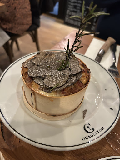 Read moreÀ éviter ABSOLUMENT. Malade toute la nuit ma copine comme moi. Ambiance très reculée et cachée, serveur très désagréable d’autant plus forceur et se permet de nous demander avec insistance et manipulation si l’autre table d’à côté était partie ne l’ayant pas vu lui même puis s’est mis dans tous ses états comme s’il était prêt à tuer pour son addition. J’ai été renvoyé trois fois de manière triangulaire, faire des aller retour entre un large nombre de tables disponibles, un serveur, complètement nonchalant , hautain et limite s’il avait quelque chose à prouver à ses clients. Puis le patron du restaurant qui se trouvait à l’intérieur sensé donner l’autorisation pour les tables vides et non réservé, 5 minutes de quiproquo nous ont suffit pour obtenir une table sur laquelle le serveur préfèrent m’avait dit impossible se donner raison okutsytmmmmmmm. Ce serveur était de taille moyenne environ 1,70 m avait les cheveux bruns et de ce dont je me rappelle était très direct face a un client mais se permettait de parler dans leur dos et de très fortement nous inconforter nous demandant si la table qui était partie pour preuve de mauvais timing en mode « ah ouais les chiens ils sont partis comme ça hein » « c’est ça ouais casser vous manger ailleurs ». La troisième étape était le bar, il fallait depuis les tables en extérieur qui étaient très froides et vide, passer par le serveur pour aller demander à avoir l’accès à l’intérieur du restaurant afin de pouvoir emander si une table était disponible à l’extérieur, ce qui est ma foi m’a paru être le travail d’un serveur/chef de rang et nous a installé à l’arrache une fois que l’intérieur nous a demandé gentiment de demander à ce serveur extérieurd de nousb placer. Très mauvaise expérience, les rillettes (de bœuf et de porcs du chef🤤) n’étaient qu’un mélange de paté sans filaments ni gras accompagnés de légume saumurés depuis l’avant 2000 BEURK. Tout ca accompagné d’une bière bien chaude et d’un plutôt bon vins rouge ( Le plus cher proposé en premier histoire bien sûr d’oublier le prix au fur et à mesure haha pas mal la technique de club.) et...