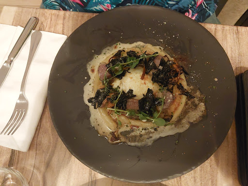 Read moreI had been looking forward to this restaurant for weeks, but I feel it failed to live up to it's write-up. The wine list only had white or red - no rosé, not even a house rosé which was dissapointing. The waitress didn't know the wines either, and had to ask someone else about our choice. The menu was not as exciting as I had expected, and I opted for the smoked salmon - a small piece with a hint of vegetables arrived. My husband had the duck sausage, but what arrived bore no resemblance to any sausage at all, but had what can only be described as a 'deconstructed macaroni cheese' under the salad and meat. For the main meal, I ordered duck, and two good sized pieces of duck arrived, which were pink inside, and were very tasty. However, the deconstructed macaroni cheese made an appearance on my plate too. A large spiral of it sat under the duck. In my shock, I forgot to take a picture of it. We declined desert, fearing another form of macaroni cheese. Overall, 4* is generous! I felt that the prices were high for the food served. I had better food at a tiny café,...