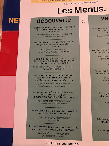 Three of us visited the restaurant Habile in Paris, and it truly lived up to its stellar reviews. We were accompanied by our 19-year-old grandson, a very picky eater who hadn't eaten much all day. The staff at Habile are exceptional; they greeted us warmly and, knowing we had a reservation, addressed us by name.