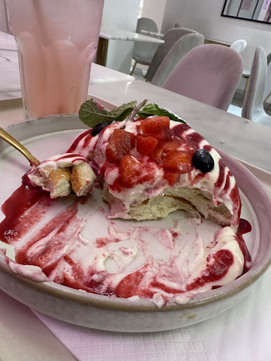 Read moreHavenât felt so robbed in a long time. A pancake with a variation of different berries and matcha for 15 euros - ended up being a small size 2 stack pancake with some cheap overly sweet marmalade inbetween the 2 pancakes and then 5 small redcurrant berries and one cherry in the middle - AND the matcha was merely the powder on top⊠you can make matcha creme etc.