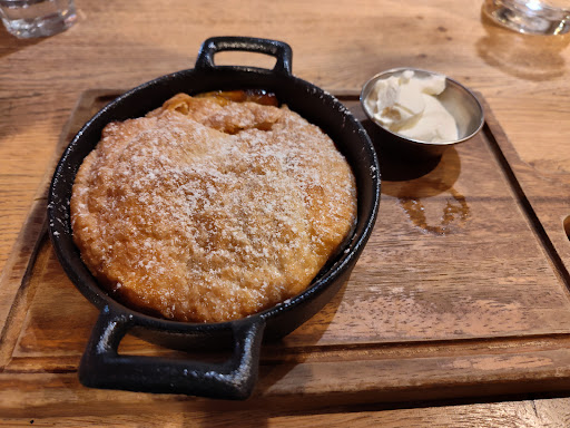 The ribeye- first came out rare (ordered medium) which was then fixed to well done -- was extremely fatty, chewy and lacked flavour. Apple crisp dessert lacked apples. The only redemption was the chocolate...