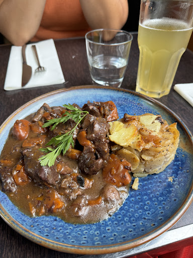 What a classy place with great food and great service. Looked full outside but we chose to sit inside for Dinner. There was plenty of comfy seating. I had the beef bourguignon it was delicious. Had an appetizer plate with all kinds of meats. Really filling. Service was fantastic even though they only had 2 servers. Never once had to ask for a refill for my water because our server was on top of it! I would...