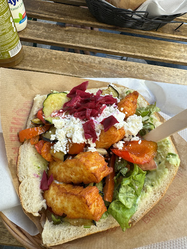 Read moreAfter reading all the amazing reviews we decided to give it a try. Very disappointing! I asked for only a bit of garlic sauce and wasnât able to taste the vegetables because there was A LOT of sauce, couldnât feel any other flavor on the kebab. Also, halloumi was so fried that it was not chewy. I just think the bread is very very good but for the rest, I wouldnât go back. We also ordered a regular chicken kebab. The chicken felt dry.