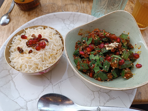 In the picture below you will see the okra vegan dish and also the rice (be aware that the rice is vegetarian and not vegan).