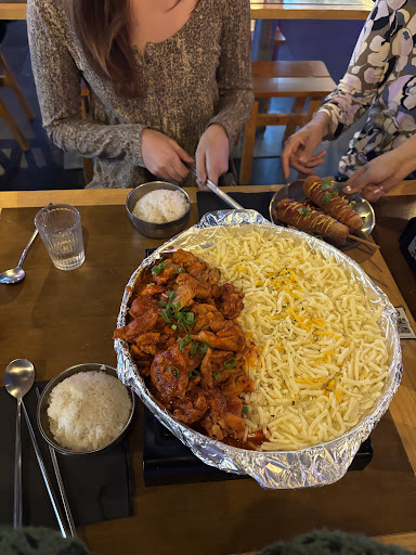 Avis de début novembre 2023 à l’ouverture : C’est un tout nouveau restaurant dans le quartier qui vient s’ouvrir il y a quelques jours, et qui appartient à une chaîne. C’est connu pour son décor avec beaucoup de néon et ses plats chauds à partager à plusieurs. Nous y sommes aller à 13:40, il y a énormément de monde donc énormément de bruit. Le riz était à moitié cru (sec et dur). Le poulet frit à beaucoup de panure mais croustillant. La sauce rouge n’est pas épicé. D’après mes amies, le bibimpap a un goût bizarre, le spicy chicken n’est pas du tout piquant elle a du rajouter beaucoup de sauce rouge mais rien à faire. Je déconseille de prendre les deux plats qu’on a pris. Mais j’aimerai bien laissé la chance au bulgogi et aux grands plats à partager.