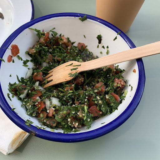 *Le Taboulé totalement insipide ; de gros morceaux de persils hachés avec de la tomate et oignons avec quelques graines de boulgour (vous pouvez les compter tellement il y a peu de boulgour) et de trois graines de grenade, l'ensemble beigné dans un fond d'eau. Le gout du taboulé : vous mangez du persil mouillé. C'est dégueulasse. Le houmous (mezze libanais), un gout pas très agréable Le moutabal (mezze libanais, un gout pas très agréable. Limite si vous achetez du houmous et du caviar d'aubergine en grande surface le gout est bien meilleur. Le Lahmajune, c'est ni plus ni moins de la viande hachée posée sur une pâte à pizza, avec beaucoup d'huile qui coulent sur vos mains (le vrai lahmajune n'est pas sur une pate épaisse à pizza). Le beureg, une patte feuilletée fourrée de fromage sans saveur frit dans de l'huile et rechauffé pour être servi. Le beureg n'a pas ce gout huileux etc.