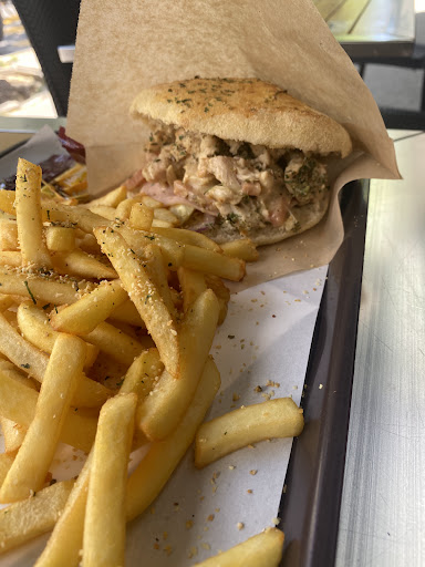 Un Grec qui sort de l'ordinaire et de loin. Trouvé par hasard car proche du gymnase des Pyrénées ou notre équipe disputait un match de basket ce petit resto a fait notre bonheur. Le lieu est très très propre ce qui pour moi est le critère le plus important dans le choix d'un resto grec. L'établissement est moderne et agréable et l'accueil est sympathique. Les produits étant préparés dans une vraie cuisine ce restaurant ne baigne donc pas dans les odeurs de friture. Les sandwichs proposés sont différents de ceux vendus dans des Kebap classiques. Ici pas de broche mais une multitude de sandwich garnis de diverses viandes et ingrédients servis dans des pains de fabrication maison. Rien que les pains dorés à souhait donnent envie de se laisser tenter. Le gros plus: les frites maisons accompagnées de chedar.... Le service est très rapide et les prix sont raisonnables et sont situés dans la moyenne haute de ce type de restaurant. Donc à conseiller sans...