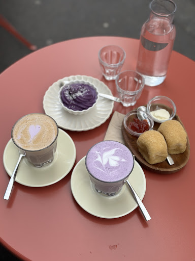 Read moreGreat little cafe near Oberkampf/République. One of the best coffees I’ve ever had in Paris. I had the a specialty coffee latte with oat milk (they use my favourite oat milk, Minor Figures) and everything about it was just amazing. Well balanced, I could feel the perfectly roasted coffee that had an interesting deep flavour to it and the milk had been nicely steamed and was very creamy. My boyfriend had the ube latte which was really delicious and fun with the purple colour. We also tried one of the desserts, it was served warm with cream and jam. You can also buy some Filipino goodies, their branded items like cute cups, tote bags and...
