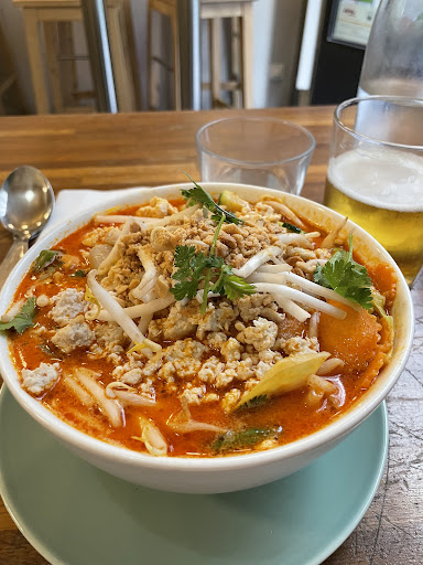 Read moreI'm not going to lie. This was one of the few thai places I've ever enjoyed in Europe. We had the green curry and chicken phad thai. The green curry was slightly spicy (a first for france!). The phad thai looked like it was missing sauce, however was so good. It isn't the sickly sweet sauce you get from most thai places in the States, but was expertly proportioned. The staff was so nice. I speak four phrases in french; "hello", "goodbye", "thank you," and "I'm sorry I'm a stupid American. Do you speak English?" They spoke great English and helped me refine my order all while expediting to numerous food delivery orders. To my American palate, I give this...