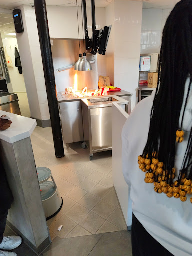 Ordered a colonel burger and loaded fries with another BBQ Burger. Ordered 3 wings too. Burgers both incredibly hard to bite through tougher than anything and no flavour. Lighting had a red hue that makes the chicken look undercooked and that’s scary Wings have either got hair in them and been deep fried or the chicken hasn’t been de feathered correctly 2 wings inedible Staff are just aimlessly walking around the kitchen with no idea what’s going on Ordered a 7up free and got the wrong drink Bins upstairs are absolutely full trays stacked high with no one coming to clean them