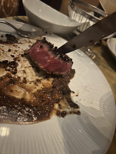 Read moreThis meal did not meet expectations. When we arrived (7pm on a Sunday), the restaurant was almost empty, which is typically a bad sign. We ordered the €120 rib roast medium-rare, and it was served quite rare. They did take it back to cook it more, but pan frying an already-sliced roast ruins its integrity. It tasted OK, but for that price I expected a perfectly cooked meal. The pepper sauce on the steak filet we also ordered was not good; my MIL scraped it off. It was sharply peppery with no balance of flavor. This one was ordered medium and was overcooked. We also ordered the fish, which was actually good. Our server was fantastic but could not make up for mediocre food. This felt like a tourist trap to be avoided — we had much better meals in restaurants...