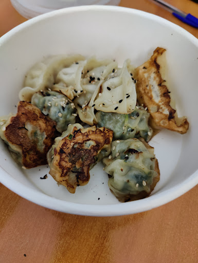 Read moreLes gyozas sont bon mais pas d'une qualité a laquelle on pourrait s'y attendre dans un restaurant spécialisé. A noter que la sauce Gyoza était beaucoup trop vinaigré. Le bol en lui même m'a assez déçu le riz était bon mais trop cuit et le poulet un peu trop sec. La salade de chou posé sur le riz ce qui a pour effet de la faire chauffer. A noter qu'il est regrettable de ne pas pouvoir faire un vrai panachage des gyozas (il faut les prendre par 5 par saveur), pour pouvoir tester 2 sorte je me suis retrouvé avec 10 Gyoza ça fait un peu beaucoup pour un midi :) Cela aurait été bien également d'avoir une formule déjeuner avec par exemple 3 Gyoza et un vrai bol, si l'on veut goûter au 2 la seul option à la carte est un bol avec moitié de viande et des Gyoza dans le bol. Je réessayerais en me disant que je suis juste tombe sur le...