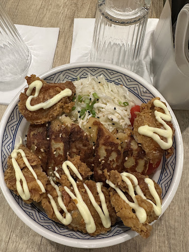 Restaurant à la fois tres bien situé et tres bon. Je vous recommande vivement le plat karaage mix avec des gyozas, un délice! En ce qui concerne les gyozas, vous en avez pour tous les goûts : au porc traditionnel, au poulet, crevette rose, crevette classique, veggie épinard ou bien veggie classique. Pour ma part, je suis partie sur des gyozas aux poulets! Des sauces sont à disposition comme la sauce sucre (j’adore 😋). Ils proposent aussi des bubble tea en partenariat avec la galerie Match, vous ne serez donc pas déçu! ;)