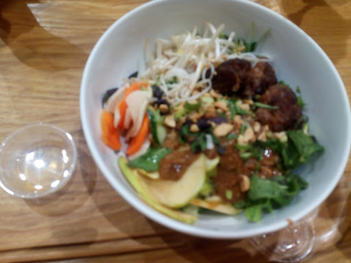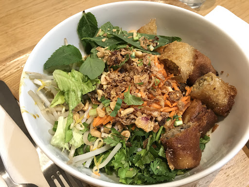 Read moreC'est un très bon article sur Lüük, lu sur un blog qui m'a donné envie d'y aller, malgré le fait que j'aille assez peu dans ce quartier. Je n'ai pas été déçue, la déco est sympa, dans l'esprit cantine à la mode, le service est appliqué, personnalisé et avec le sourire. J'ai commandé un bobun au boeuf. La viande ne m'a pas convaincue, elle manquait de saveur, un peu trop cuite, je pense. Pour le reste, les nems sont bons, les crudités sont fraiches et ont du goût, et dans l'assaisonnement on retrouve du basilic thai, que je n'avais jamais vu dans un bobun, ce bobun est tout simplement excellent, malgré mes réserves sur la viande. Il est équilibré en goût, très généreux sur tous les ingrédients, pas seulement la salade ou les vermicelles. En dessert j'ai pris un macaron framboise avec framboises fraîches et crème de litchi (sans gluten), très bon, un peu compliqué à manger proprement! C'est presque un sans faute pour cette très bonne adresse, où je vais retourner...