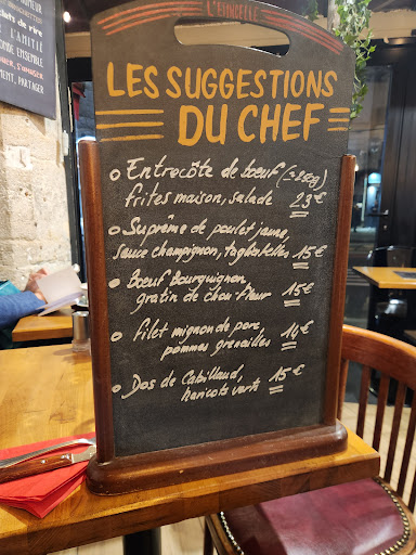 My boyfriend and I had a very nice dinner here. We just popped in and we're immediately greeted and seated. The server walked us through the specials of the day and we each got the entrecôte de boeuf (steak) with fries and a salad. We shared the giant bowl of French onion soup as an appetizer and were supplied with plenty of very yummy bread. We were freezing from the cold weather, so he got a cappuccino and I got a hot chocolate. Mine was more milk than chocolate, but fine nonetheless. And his was a standard cappuccino. The atmosphere was very friendly and welcoming! Would recommend, it...