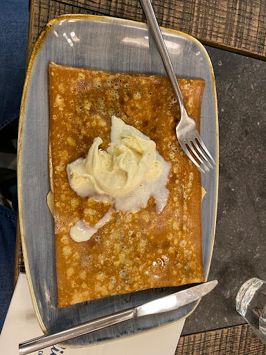 Don't even get me started on the food, the salty crêpe I got was a salmon tatare with potatoes and a crème, somehow it felt like they were only allowed to use 1 potato for the whole crêpe? I had some bites where it was just sauce... however, the desert crêpe with the chestnut cream was very good.