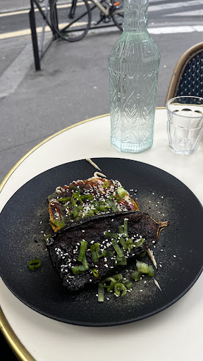 Read moreI love Okonomiyaki and this place does it spot on. No where else in Paris even comes close to this, and I believe is the first time I had it outside of Japan that I loved. Which is surprising as it is not a Japanese joint, and they don’t offer any other variations, just the vegetarian version i ate. Which was accompanied by a very delicious Nasu Dengaku. It was divine!! 😋 must admit it was very strange feeling toe at it with a knife and fork. The terrace seating is quite enjoyable and the staff were...