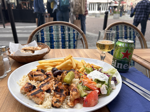 Read moreC’est un restaurant que j’aime beaucoup et dans lequel je retourne volontiers lorsque j’ai envie de déguster les spécialités culinaires grecques. Il est situé rue Mouffetard au niveau de la place de la Contrescarpe. On est juste à côté du quartier latin et du jardin du Luxembourg ce qui fait que vous pouvez également prendre un sandwich à emporter et aller le manger par beau temps au jardin. Pour ce qui est de ma part, je mange sur place: le resto a un certain charme de l’ancien avec des poutres au plafond et des couleurs clairs qui évoquent la Méditerranée. Et le tout avec de la musique grecque en fond sonore. Tout cela contribue à instaurer une ambiance chaleureuse, on s’y sent très bien. Je prends toujours une assiette et plus particulièrement leur assiette crétoise. Outre les frites et la viande, son petit plus c’est qu’on n’a pas à choisir entre le tarama, le houmous ou encore le tzatziki, on a le droit aux trois. Et j’aime accompagné le tout de leur salade grecque. Et n’oublier pas de terminer avec un dessert, leur baklava est vraiment bonne. Bref et sans être exceptionnel, les plats sont bons, on y mange bien et le tout dans un cadre très charmant. Seul petit bémol: tous les produits comme le pain ou les frites ne sont pas faits maison. Ça ne gâche en rien l’expérience mais ils gagneraient énormément à corriger ça. Et pour terminer, je me dois de complimenter le service qui fut...