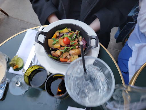 TrĂšs trĂšs mauvaise expĂ©rience il y a quelques semaines.Suite Ă la mĂ©tĂ©o clĂ©mente nous avons dĂ©cidĂ©s de changer nos habitudes dans le quartier..A notre arrivĂ© nous demandons Ă ĂȘtre installĂ©s en terrasse cĂŽtĂ© soleil il y avait dĂ©jĂ une option pour cette place, malgrĂ© tout nous nous installons et commandions 1 verre de vin afin dâattendre le reste de lâĂ©quipe.Nous nous renseignons sur la possibilitĂ© dâavoir des plats vĂ©gĂ©tariens pour certains dâentre nous, la dessus aucun problĂšme jusquâĂ prĂ©sent.Au moment de la commande 3 planches de fromages sont commandĂ©s ainsi que divers plats et la commence la descente aux enfers.Le patron qui dĂ©barque je ne vais pas pouvoir vous servir ces 3 planches, mon Ă©quipe Ă©labore des plats gastronomiques je ne peux donc accepter votre commande.ChoquĂ©s certains ce sont levĂ©s direct et proposaient dâaller se restaurer ailleurs.Les clients prĂ©sents en terrasse ce jour ont hallucinĂ©s concernant cette intervention du patron.Le serveur agrĂ©able mais est restĂ© trĂšs gĂȘnĂ©.Nous dĂ©cidons de terminer notre verre afin dâaller rejoindre le reste de la troupe.Câest malheureux pour vous cher patron car malgrĂ© les prix exorbitants que vous pratiquez vous avez perdu entre 150âŹet 200âŹ.Nous sommes peut-ĂȘtre des simples clients habillĂ©s en tenues dĂ©contractĂ©es ce jour la mais de sacrĂ©s critiques gastronomiques, heureusement pour nous que nous nâavons pas goĂ»tĂ© Ă vos plats, la encore il y aurait des choses Ă dire...Tout est Ă revoir dans votre fonctionnement quand vous vous permettez de proposer une piĂšce de boeuf Ă 24⏠sans aucune sauce pour lâaccompagner ça ce nâest pas de la cuisine gastronomique!!De plus si vous ne souhaitez pas faire de planches de fromage le midi vous pourriez peut-ĂȘtre les retirer de votre carte, ça faciliterait la tĂąche Ă vos serveurs.Vous ne prenez pas les tickets restaurants vous pourriez peut ĂȘtre le prĂ©ciser câest juste un dĂ©tail parmis tant dâautres..Vous lâaurez compris nous ne reviendrons plus jamais.Nous sommes en 2019 et beaucoup de plus de personnes sont vĂ©gĂ©tariennes,vĂ©gĂ©taliennes..il faudrait penser Ă revoir votre carte.Dommage que lâon ne puisse pas cocher 0 Ă©toiles,car la seule que jâai pu vous accorder vous ne la mĂ©ritez...
