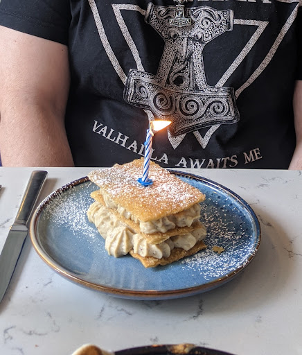 Je ne vous conseillerais le "mi norvegienne mi meringue" que si vous êtes bon mangeur et amateur de sucre ! Pour le mille-feuille, je n'ai pas pus retrouver à quoi il correspond sur la carte mais il était croquant, léger, et pas trop sucré, top !